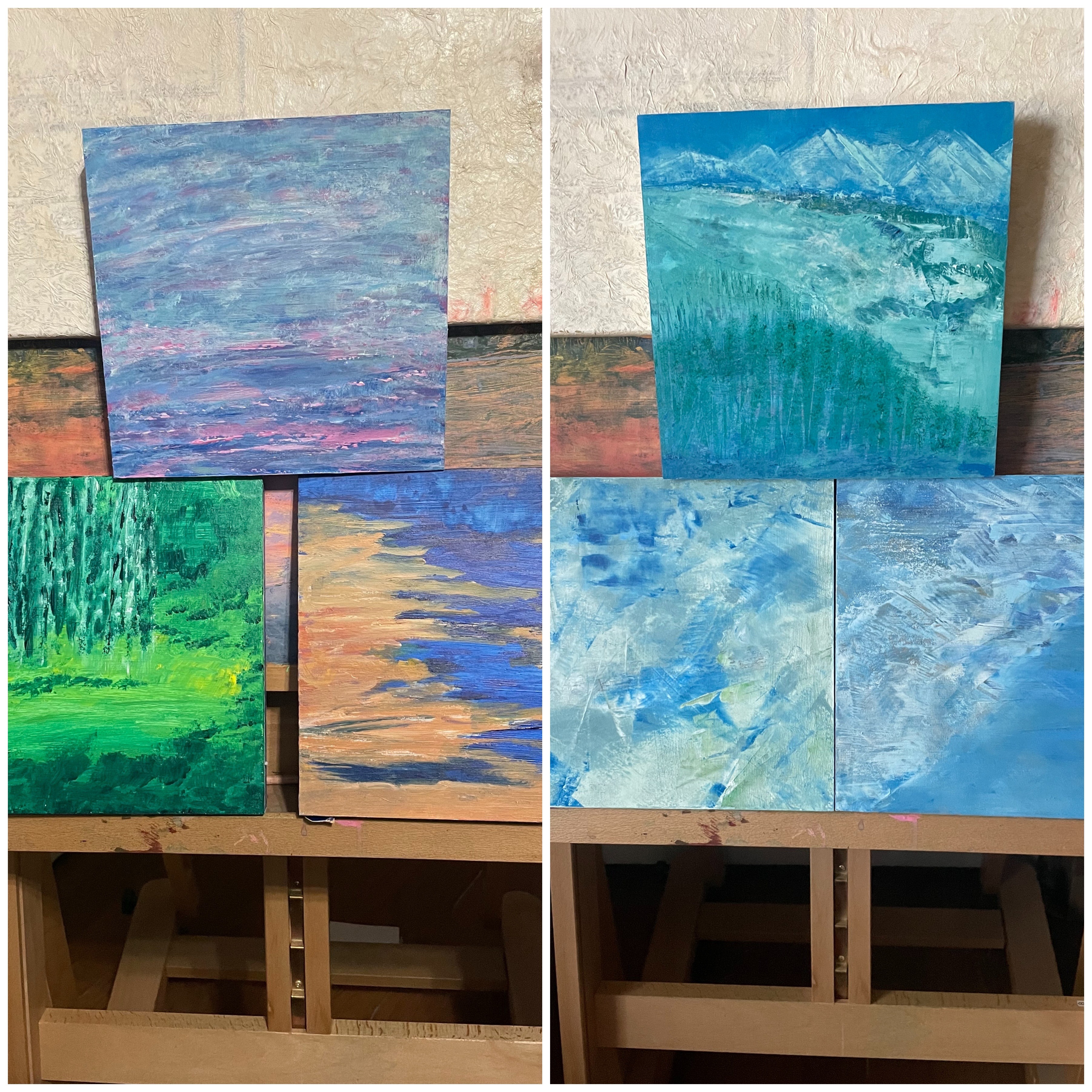 As you can see …I gravitate to shades of blue for my oil and cold wax layers often with the bright bold colors of sunset underneath. The colors of nature lift me up and somehow ground me at the same time.