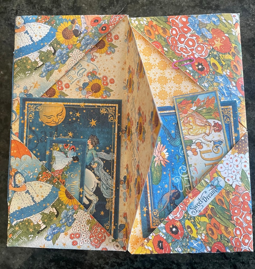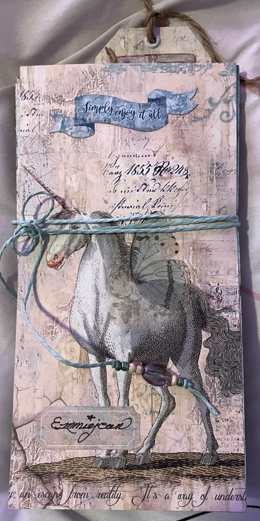 I’ve been making accordion pocket books for my grandkids. Pocket book on one side, journaling signatures sewn in on the other side. Here’s a sample of my latest batch created from #Stamperia and #Graphic45 scrapbooking paper. So Much Fun!
