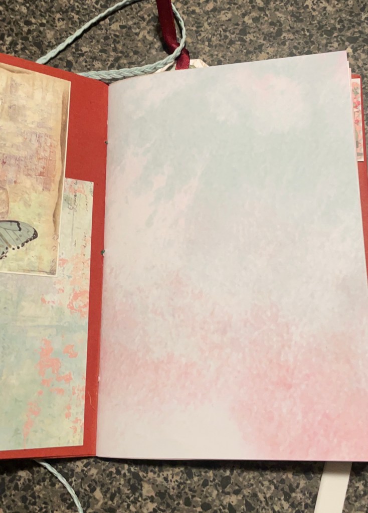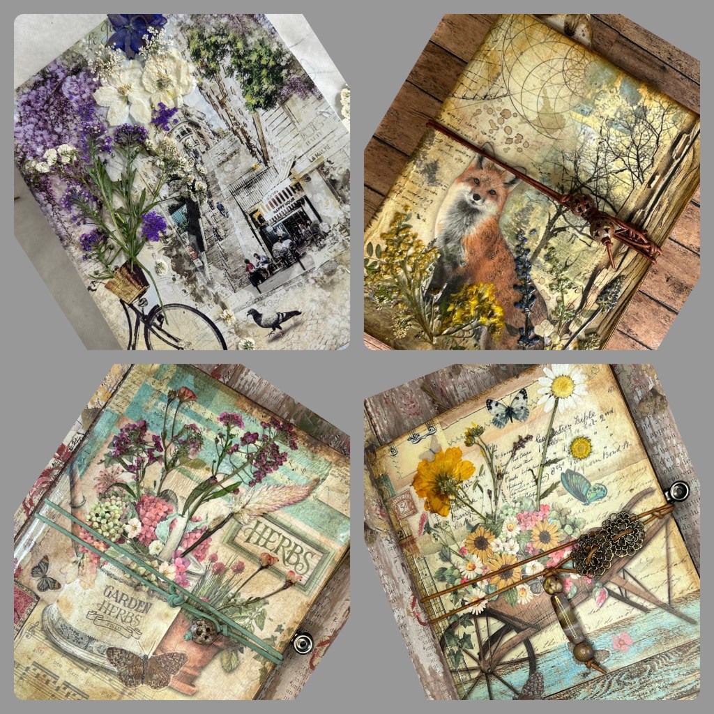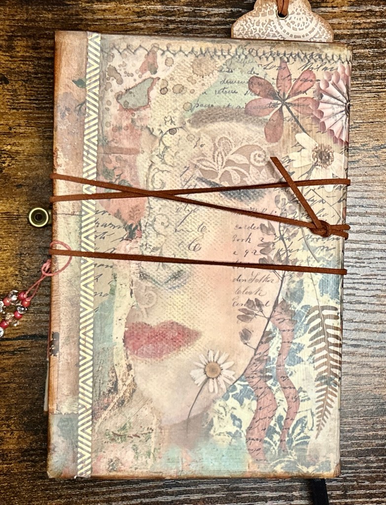 In my last blog I mentioned my love of book making. I had enjoyed collaging on journals and notebooks for myself, as an expression of me at that moment in time. As a member of a local art non profit group, I hosted a pop up class on creating collage on a simple notebook for folks that stopped by to visit and view my mixed media art during our Artists Studio Tour. It was great fun!