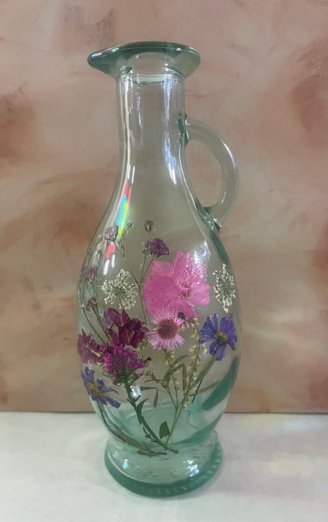 As a mixed media artist I always have a lot of “stuff” in my studio that might have the potential to end up in my art…so I decided to add accenting pressed flowers to a small bud vase. It made a beautiful gift set, so yes…I went on to create one of a kind gifts for all my children. I have plans to eventually offer gift sets like these in my Etsy shop as well.