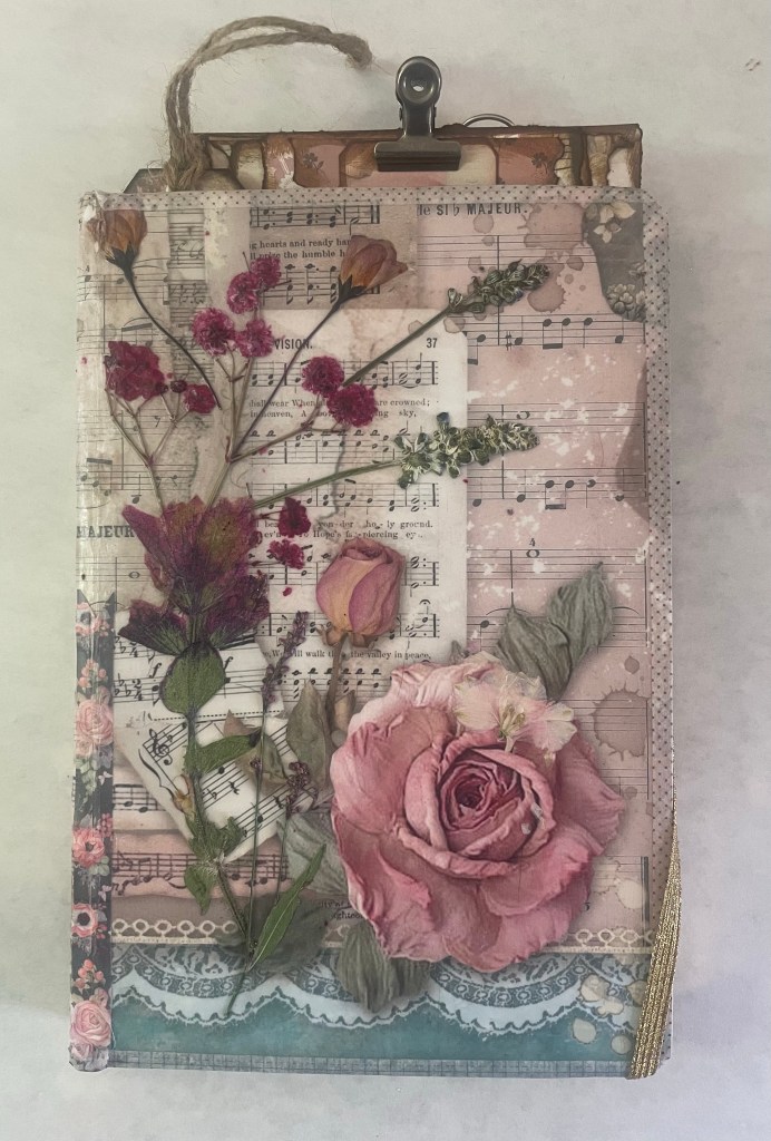 Do What You Love ! JournalDo What You Love ! is a lovely journal for the creative in your life. This one-of-a-kind embellished journal is a magical place for that creative person on your gift list to find inspiration as the ideas flow from pen to paper. Journal is altered with scrapbook paper and ephemera from Stamperia paper to create a unique, one-of-a-kind, embellished journal. Pressed flowers on cover add a lovely, unusual touch. Interspersed with bookmarks, little notebooks and other surprises, this journal is created to delight the creative nature of the artist. Journal pages are lined, good quality paper waiting to record thoughts, dreams, lists, manifestations, aspirations, etc. in an inspiring, uplifting space.